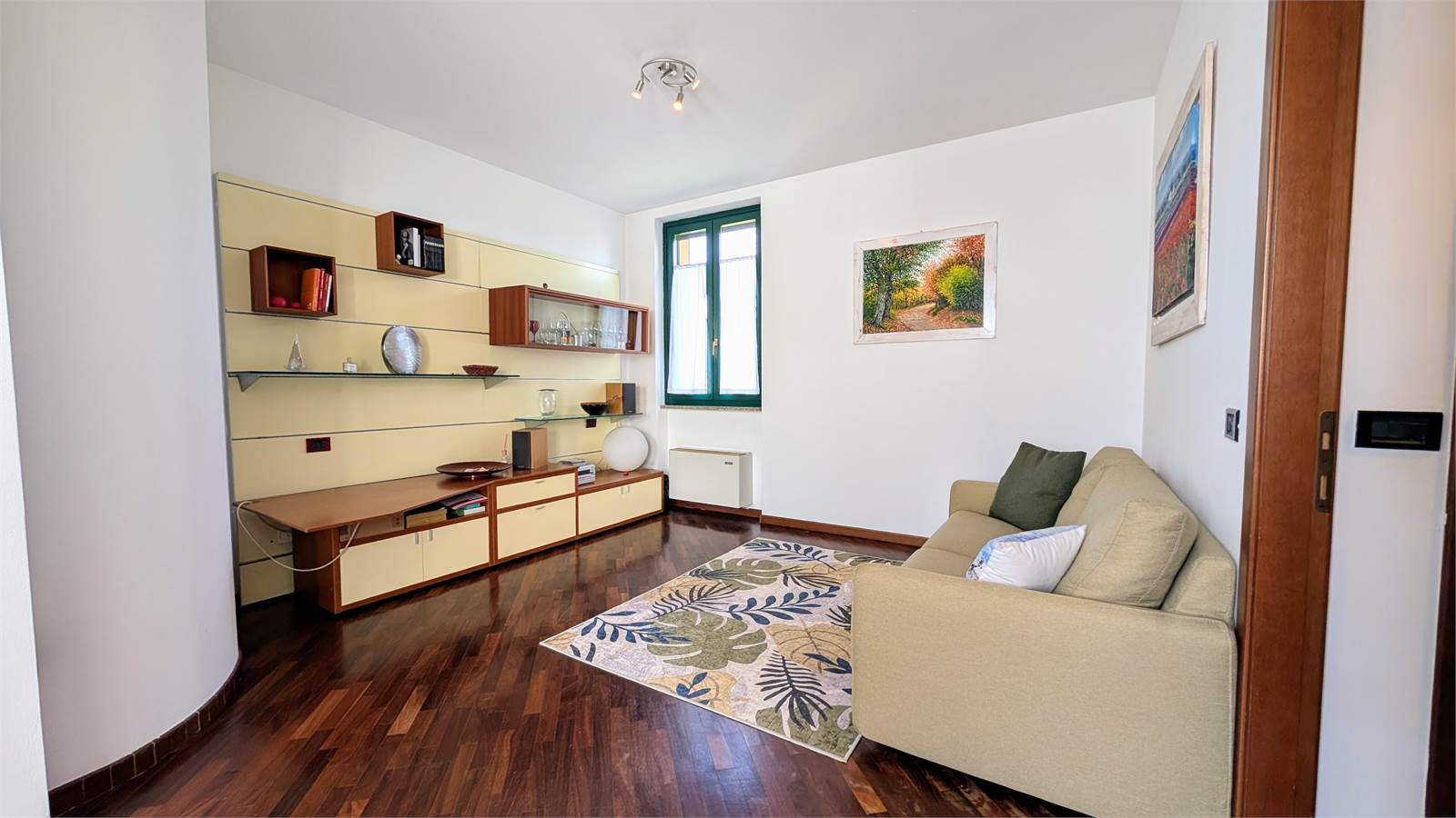 L'intera abitazione è impreziosita da parquet caldo e raffinato, mentre la ceramica caratterizza gli ambienti del bagno e della cucina. La doppia esposizione est-ovest garantisce luce abbondante tutto il giorno, creando giochi di chiaroscuro che esaltano gli spazi. Dotata di caldaia autonoma e con spese condominiali contenute, circa 100 € mensili.