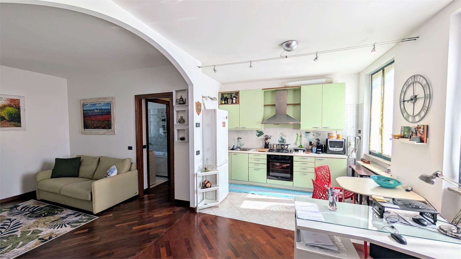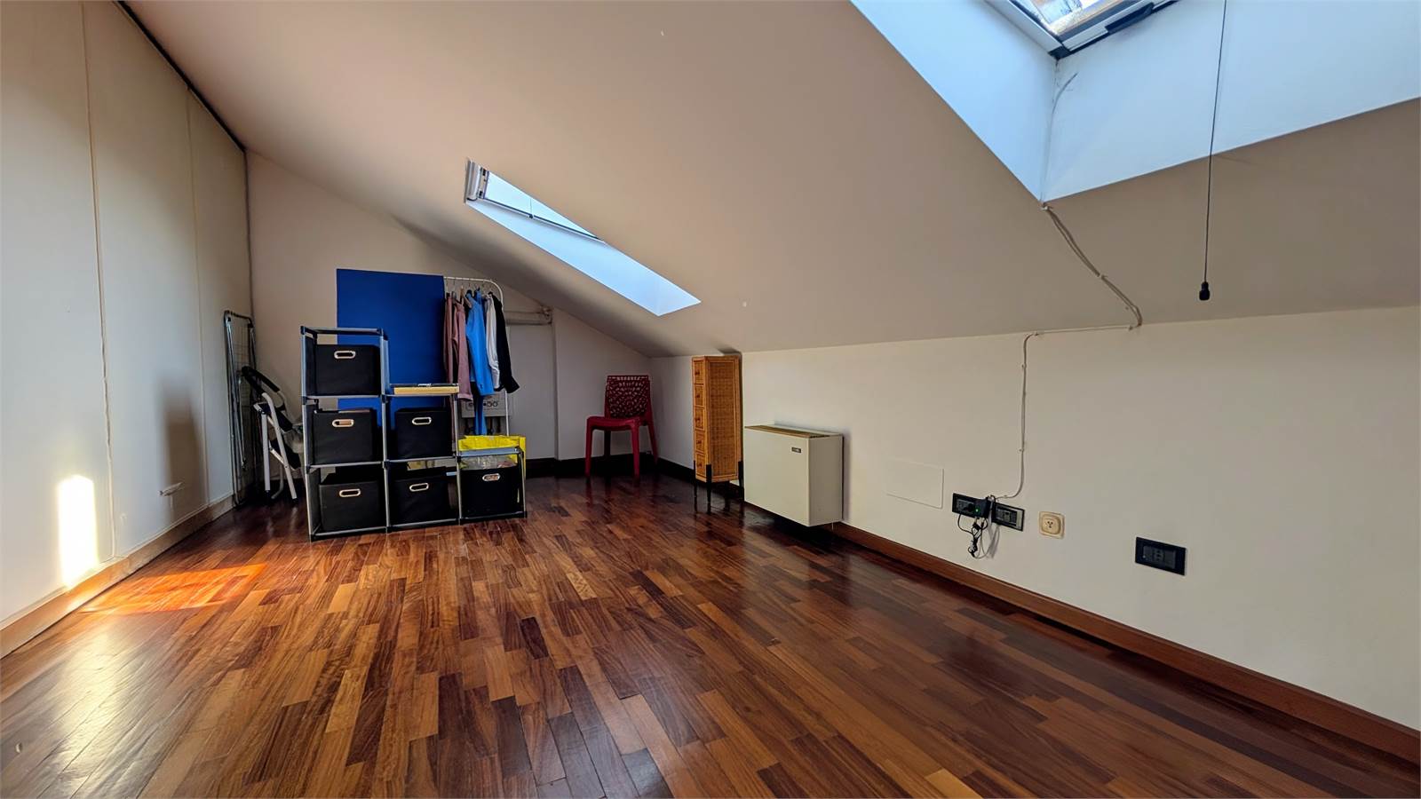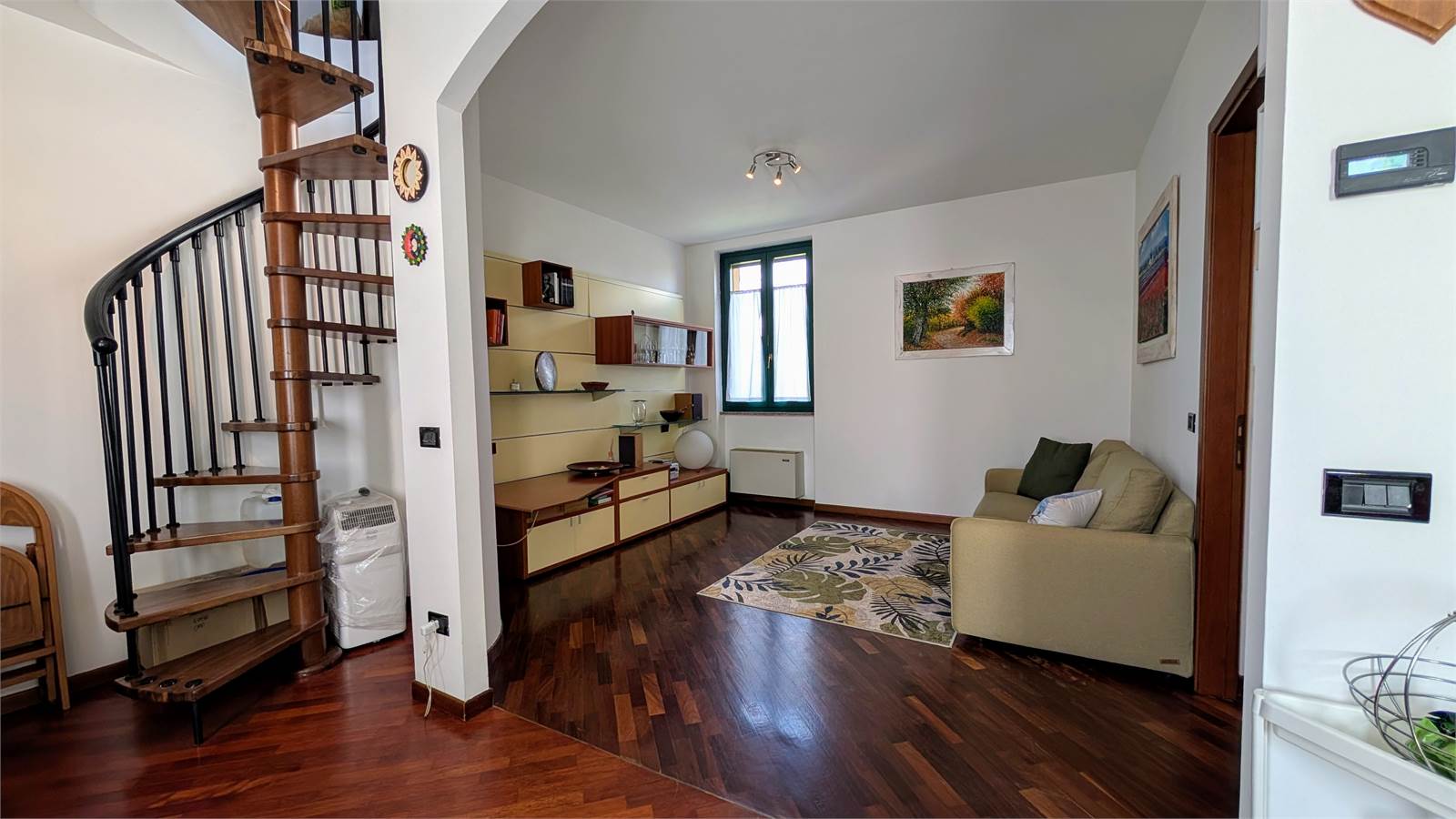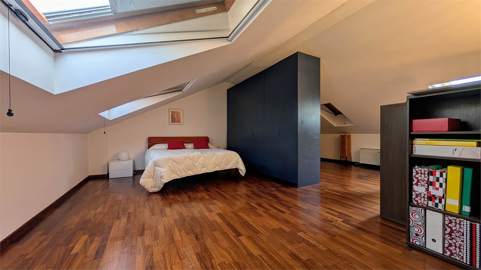 Appena varcato l'ingresso, troviamo un ampio soggiorno di 40 metri quadrati, arricchito da una cucina a vista perfetta per chi ama intrattenere ospiti o godersi momenti conviviali. Proseguendo, un pratico disimpegno introduce al bagno completo, dotato di una rilassante vasca idromassaggio. Al piano superiore mansardato un comoda scala in legno apre sulla zona notte di ampia metratura, illuminata da quattro grandi lucernari, la quale offre la possibilità di dividere l'ambiente in due camere da letto.