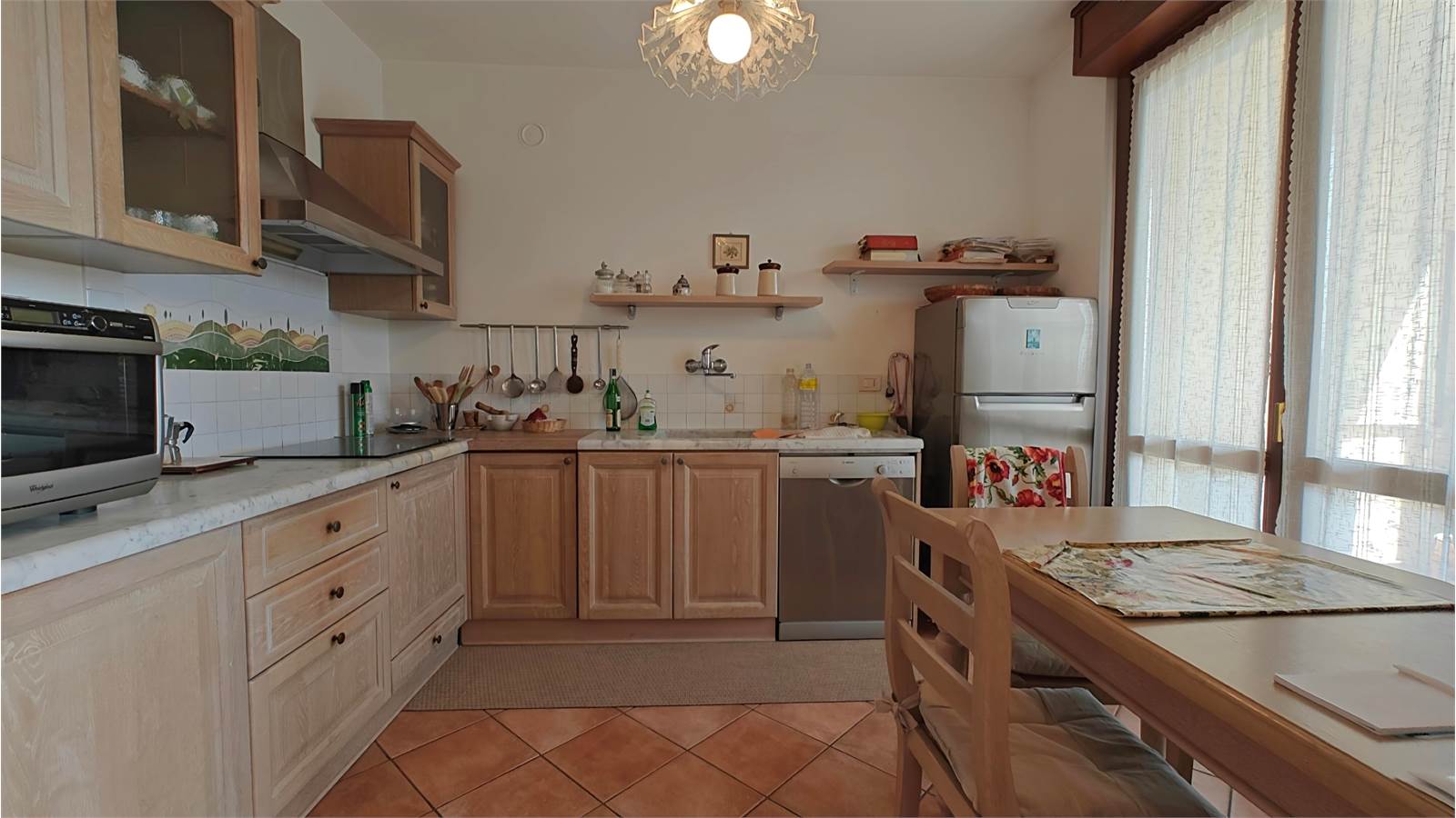 L'immobile è inoltre corredato di un comodo ripostiglio, una cantina e un box singolo. Tra le moderne finiture interne troviamo: la porta d'ingresso blindata, gli infissi in legno con doppi vetri per un isolamento ottimale. La pavimentazione è in ceramica monocottura nella zona giorno e nei bagni, mentre le camere da letto sono impreziosite da elegante parquet. L'immobile è dotato di un impianto di climatizzazione con due motori e due split.