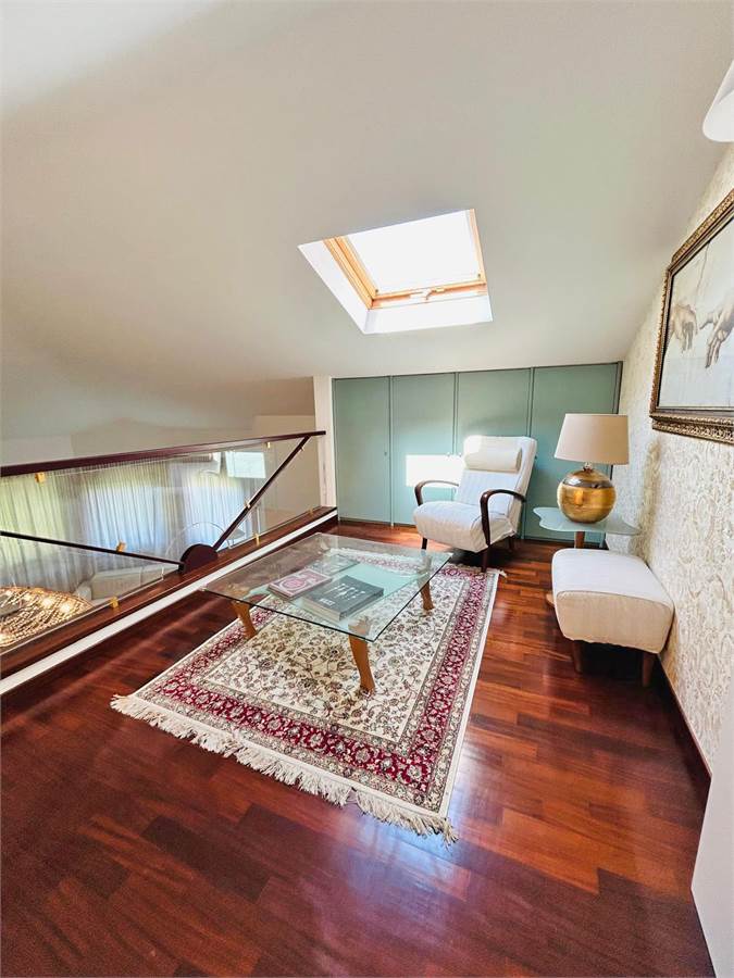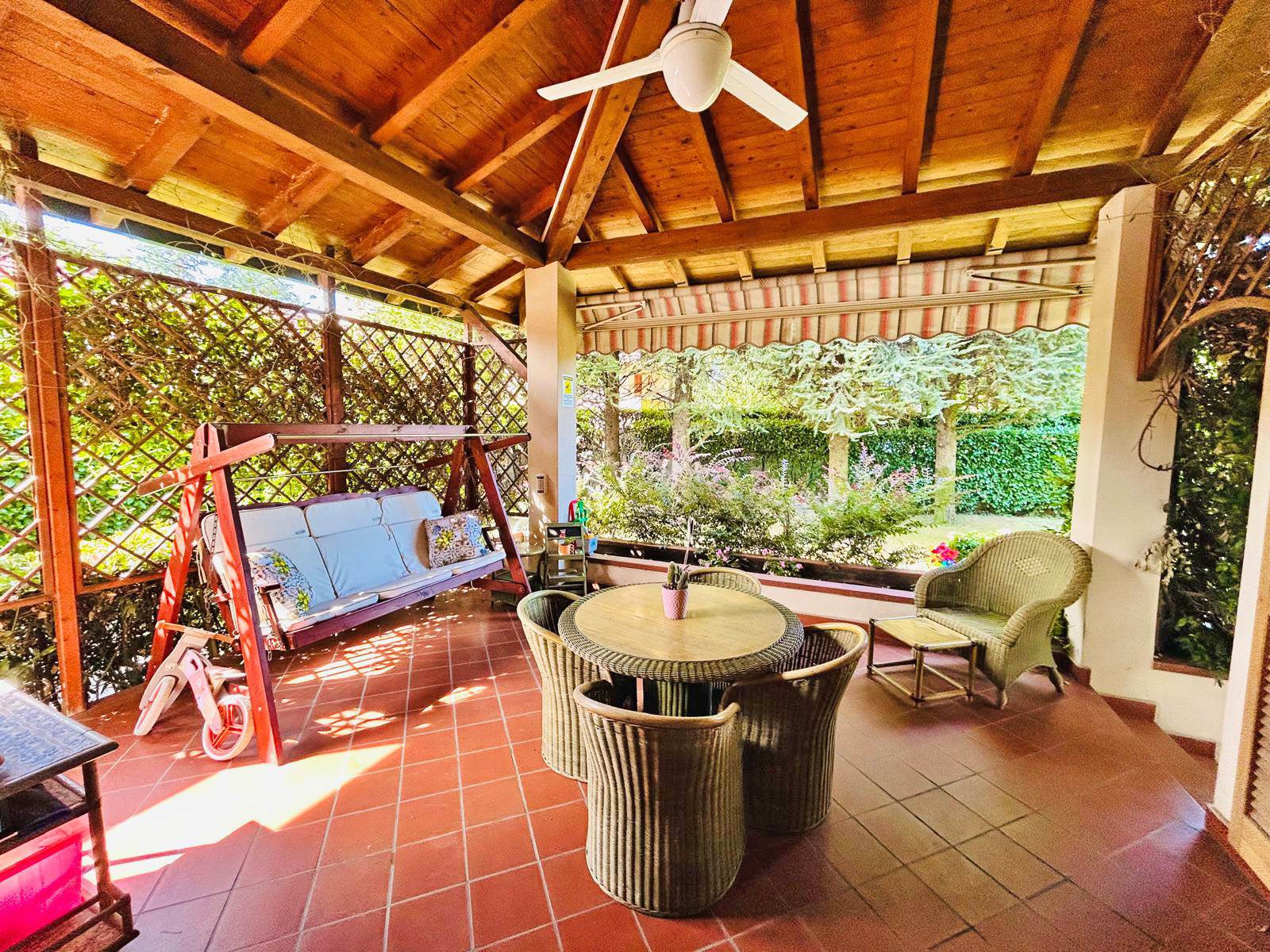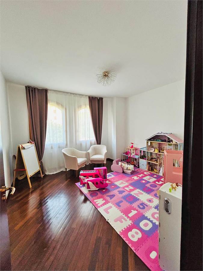 All’interno di un tranquillo e riservato contesto residenziale, proponiamo in vendita una splendida villa indipendente rifinita con materiali di alta qualità, recentemente rinnovata e pronta da abitare. La proprietà si apre su un ampio e luminoso soggiorno doppio, caratterizzato da grandi vetrate angolari che regalano una meravigliosa luce naturale durante tutta la giornata. La zona living, raffinata e accogliente, ospita un’area conversazione comoda con spazio per divani e poltrone e un angolo TV, il tutto arricchito da finiture di pregio, come il parquet in teak e la nuova controsoffittatura realizzata nel 2024. Un soppalco a sbalzo affacciato sul soggiorno ospita una suggestiva zona lettura, perfetta per momenti di relax e tranquillità. La cucina abitabile è separata e spaziosa, ideale per la vita quotidiana e per accogliere la famiglia. Al piano terra è presente anche un elegante bagno finestrato con box doccia e finiture in bianco e nero, dallo stile contemporaneo e sofisticato. La zona notte comprende quattro camere da letto, due al piano terra e due al primo piano, tutte rifinite con parquet e dotate di ampie finestre. Una delle stanze è attualmente adibita a spazio giochi per bambini, ma può facilmente essere riconvertita in studio, camera ospiti o altro ambiente a seconda delle esigenze. Sempre al primo piano troviamo un ampio ripostiglio e un comodo bagno con doccia. Il piano seminterrato, è stato sapientemente trasformato in un'area dinamica e funzionale. La versatilità di questo spazio permette di avere diverse zone distinte, adatte a svariate esigenze come un ambiente attrezzato per cucinare, perfetto per momenti conviviali con amici e in famiglia. Per migliorare ulteriormente la funzionalità dello spazio, ci sono aree dedicate a una palestra domestica e a una lavanderia, oltre ad comodo servizio. L’area esterna è altrettanto curata. Il portico coperto si presenta come una vera e propria estensione della zona giorno, la copertura con travi in legno a vista e il ventilatore a pale creano un'atmosfera fresca e accogliente, ideale per godersi le giornate in compagnia di amici e famiglia, perfetto per il relax e il divertimento all'aria aperta. Troviamo un'area attrezzata con barbecue in muratura, ideale per grigliate e cene all'aperto, fioriere con piante rampicanti che aggiungono un tocco di verde e privacy. Il giardino è servito da un impianto di irrigazione automatica con tre punti acqua esterni. La vegetazione lussureggiante, inclusi alberi ad alto fusto, garantisce zone d'ombra naturali perfette per il relax. La disposizione di viali e percorsi in pietra, insieme all'impianto di illuminazione, rende il giardino pratico e accogliente anche di sera. La villa è dotata di infissi in legno con doppi vetri antisfondamento, zanzariere, tapparelle motorizzate e inferriate per la massima sicurezza. Un sistema domotico BTicino Living Now permette di controllare luci, tapparelle e riscaldamento da app o con assistente vocale. Alcune stanze sono arricchite da carte da parati firmate Versace. Per le stagioni fredde, è presente un camino, e molti arredi su misura sono inclusi nella vendita, come gli armadi in varie stanze, la cucina in muratura della taverna completa di elettrodomestici e due divani. Per quanto riguarda la sicurezza e la tecnologia, la villa è dotata di un videocitofono Wi-Fi di ultima generazione che permette di controllare gli accessi direttamente dallo smartphone. La protezione è ulteriormente rafforzata da un doppio impianto di allarme, sia perimetrale che interno. Il comfort climatico è assicurato da una pompa di calore caldo/freddo al piano terra e un impianto di condizionamento al primo piano. La casa è tecnologicamente aggiornata grazie a un impianto elettrico completamente rifatto nel 2022 e una caldaia a condensazione sottoposta a regolare manutenzione. I due box auto sono motorizzati e completati da un nuovo cancello elettrico installato nel 2022. Sono inoltre disponibili diversi spazi per parcheggiare le auto di ospiti, amici e parenti. Questa villa rappresenta la soluzione ideale per famiglie o per chi desidera vivere in un ambiente riservato e confortevole, senza rinunciare al design, alla tecnologia e alla comodità degli spazi. Contattaci oggi stesso per organizzare una visita e scoprire ogni dettaglio di questa esclusiva proprietà.