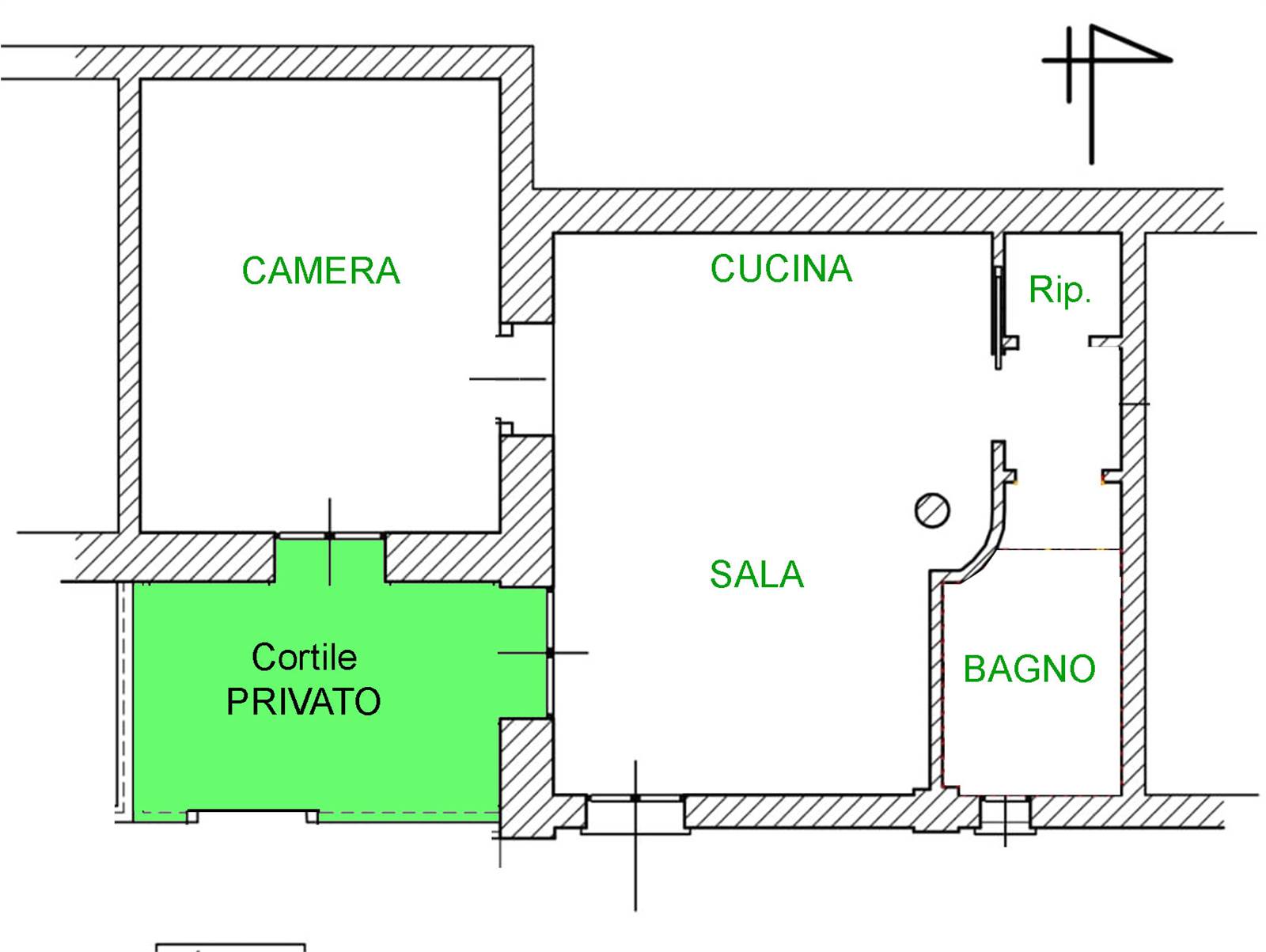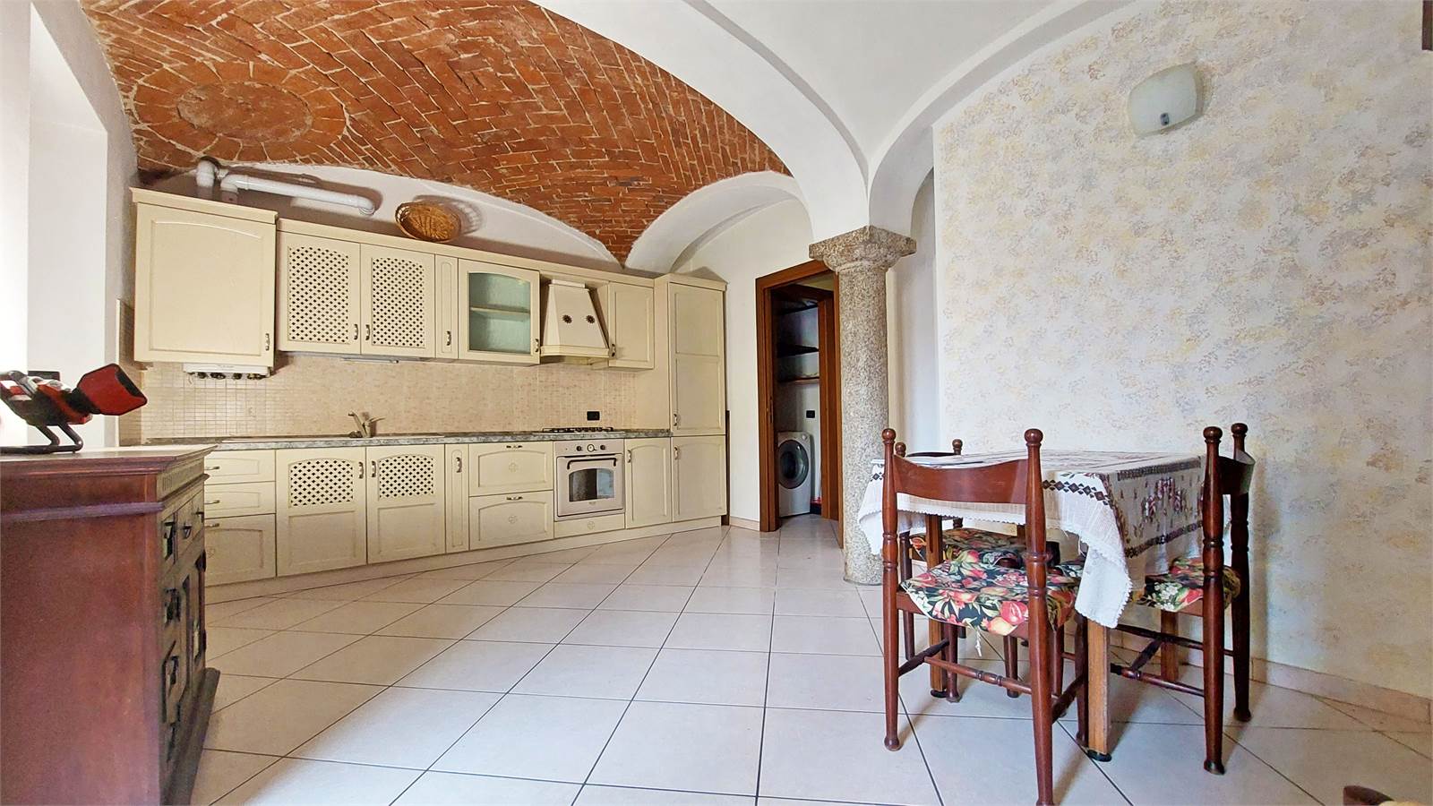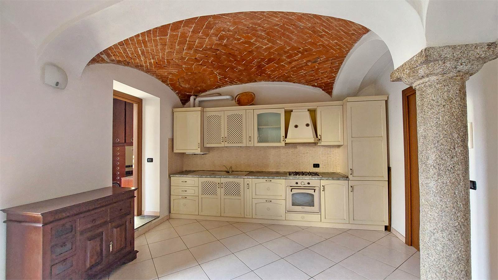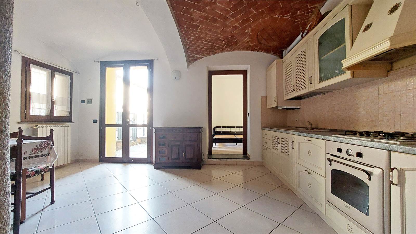 L’ingresso si apre su un soggiorno con cucina a vista, uno spazio conviviale valorizzato da affascinanti dettagli rustici, come il pilastro in pietra e il soffitto a volta in mattoni, che conferiscono carattere e unicità all’ambiente. TERRAZZINO ESTERNO. La zona notte comprende una camera matrimoniale, un pratico disimpegno con ripostiglio e attacco lavatrice e un bagno finestrato con doccia.