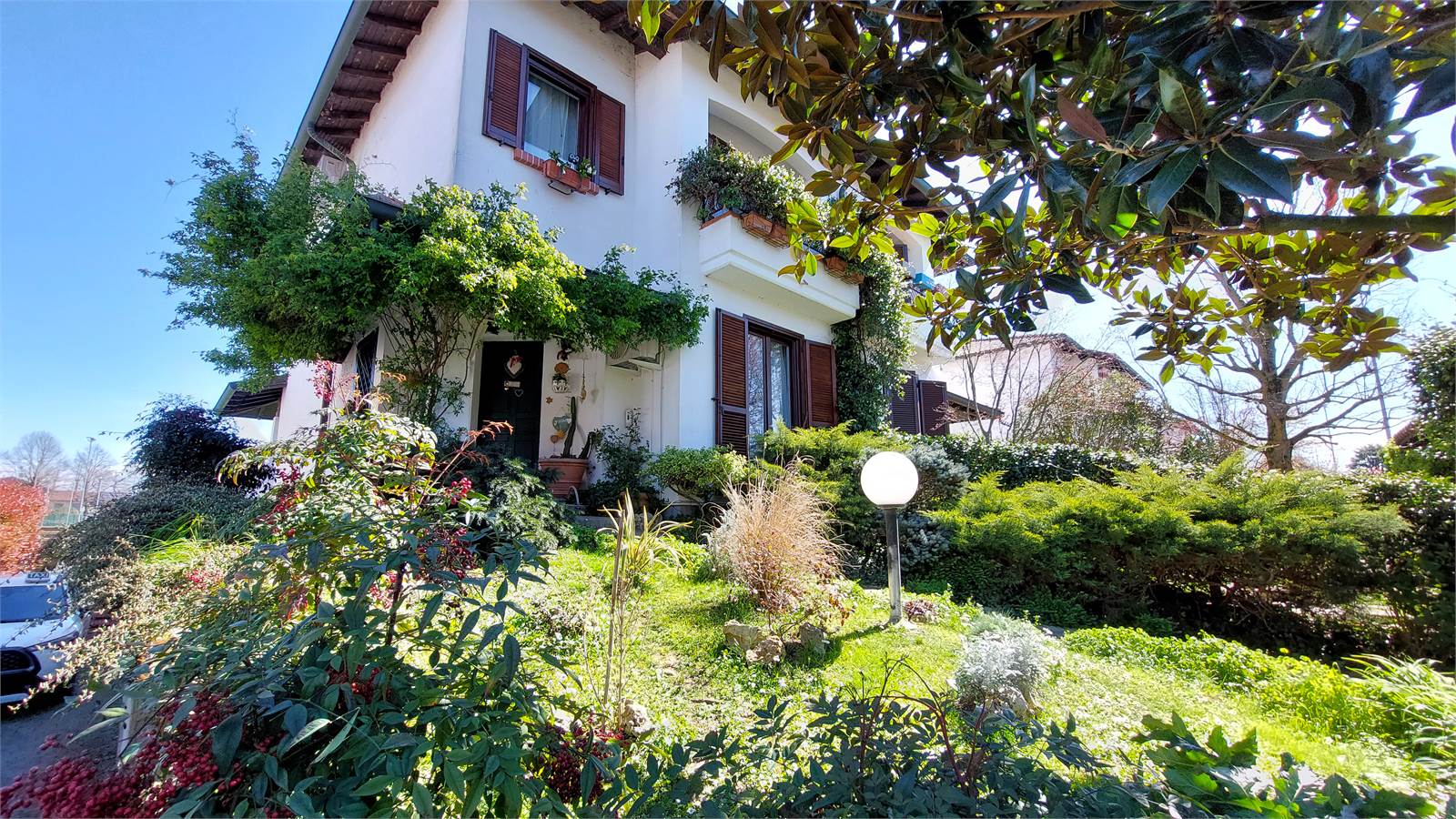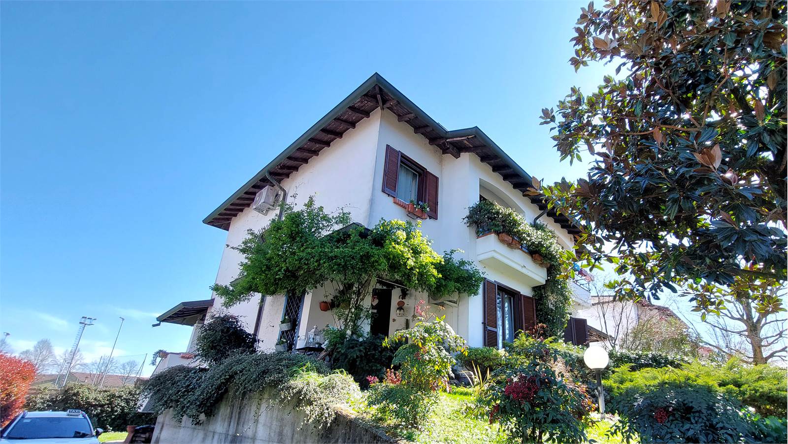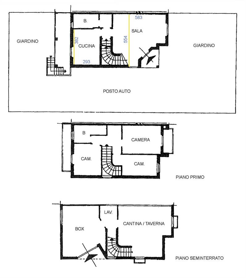 Al piano seminterrato trova spazio un’ampia taverna con camino, ambiente caldo e conviviale perfetto per momenti in famiglia o con amici, oltre al box autorimessa. La proprietà è completata da un giardino frontale e da un secondo spazio verde sul lato della cucina; nel cortiletto è inoltre possibile parcheggiare comodamente un’autovettura.