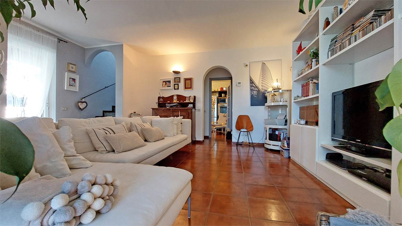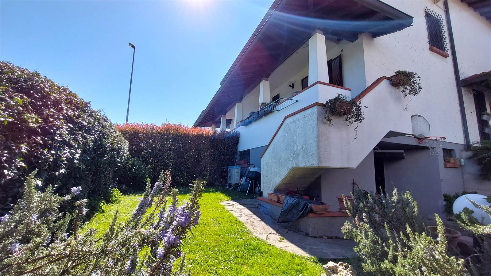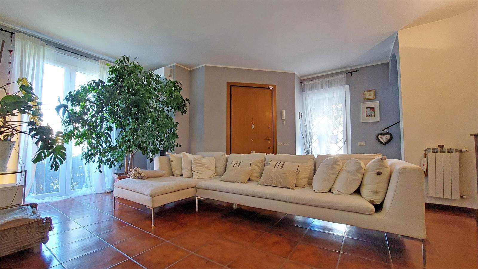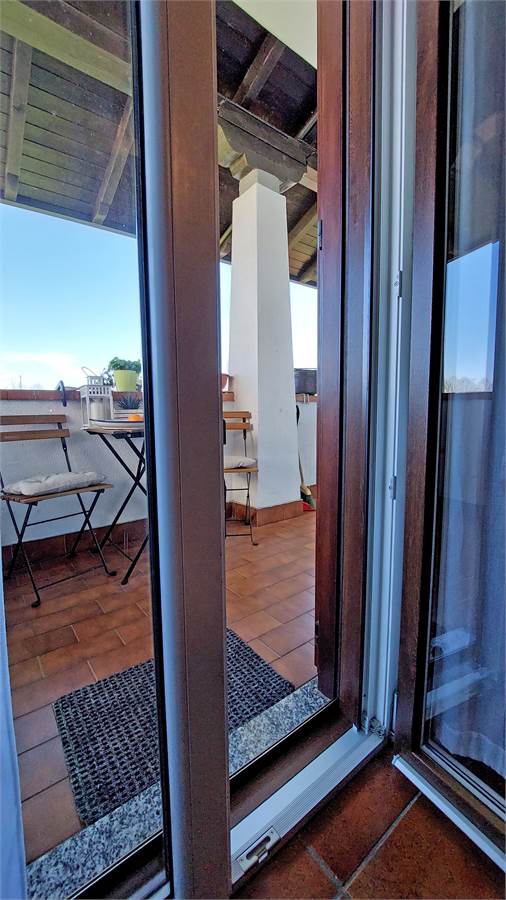 Le finiture interne risultano calde e curate, con pavimentazione in cotto nella zona giorno e parquet nella zona notte, oltre a sanitari recentemente rinnovati. La tripla esposizione est – nord – ovest assicura una buona distribuzione della luce naturale durante l’arco della giornata.