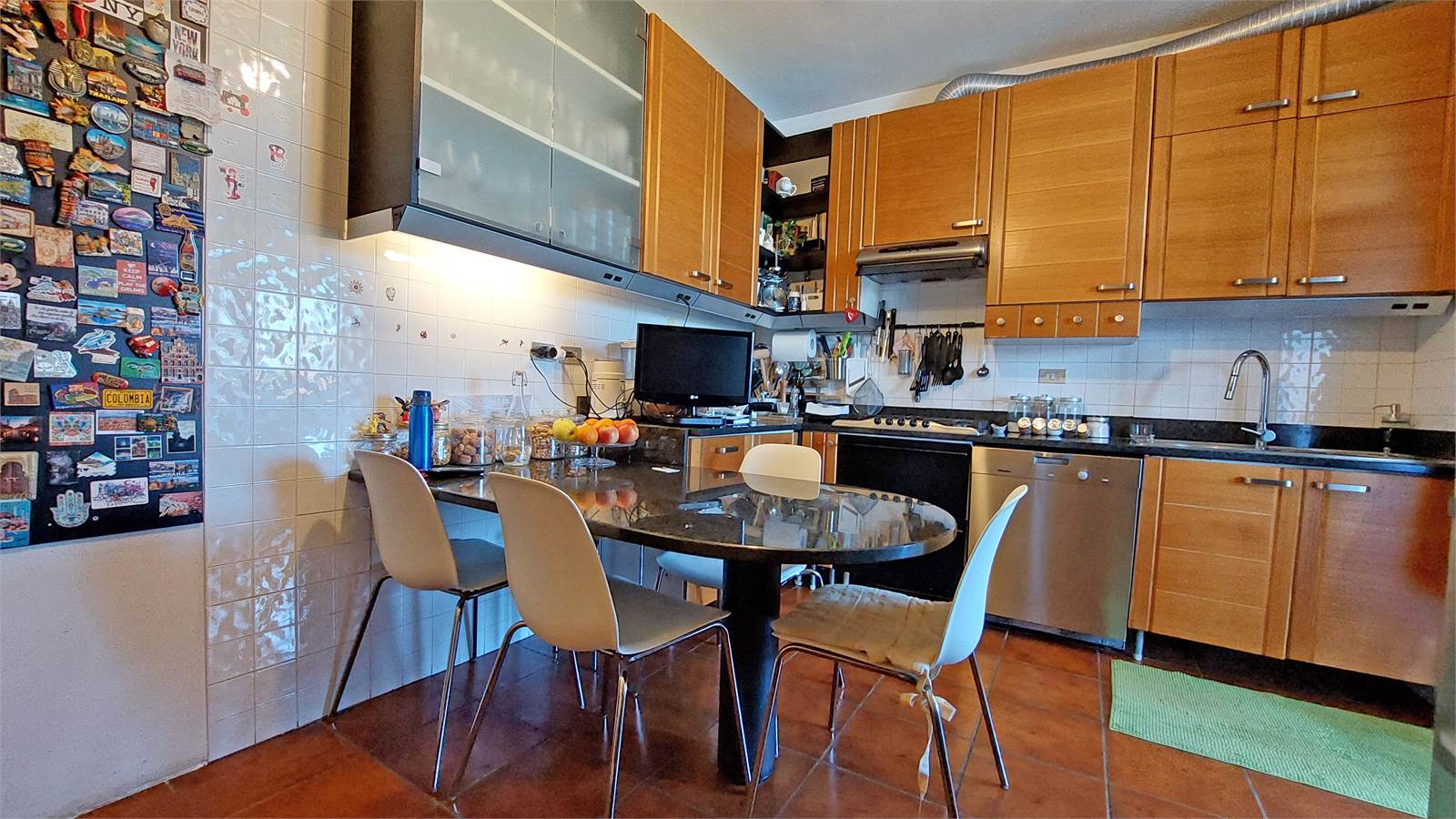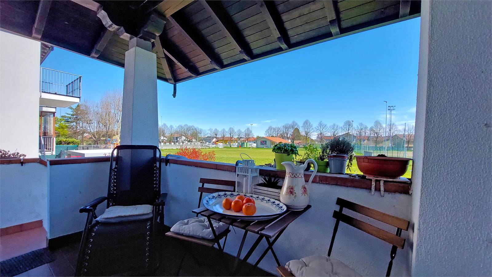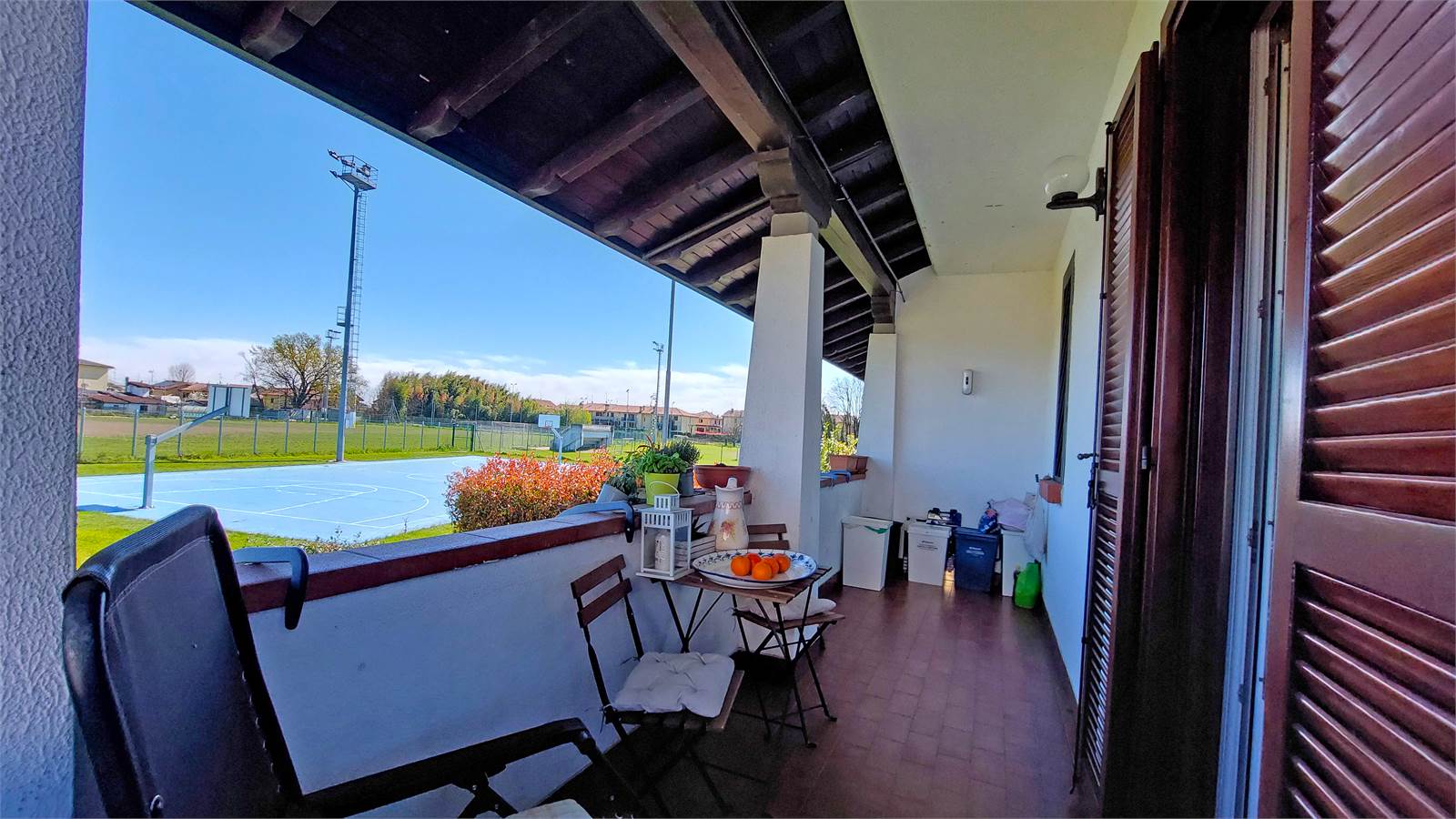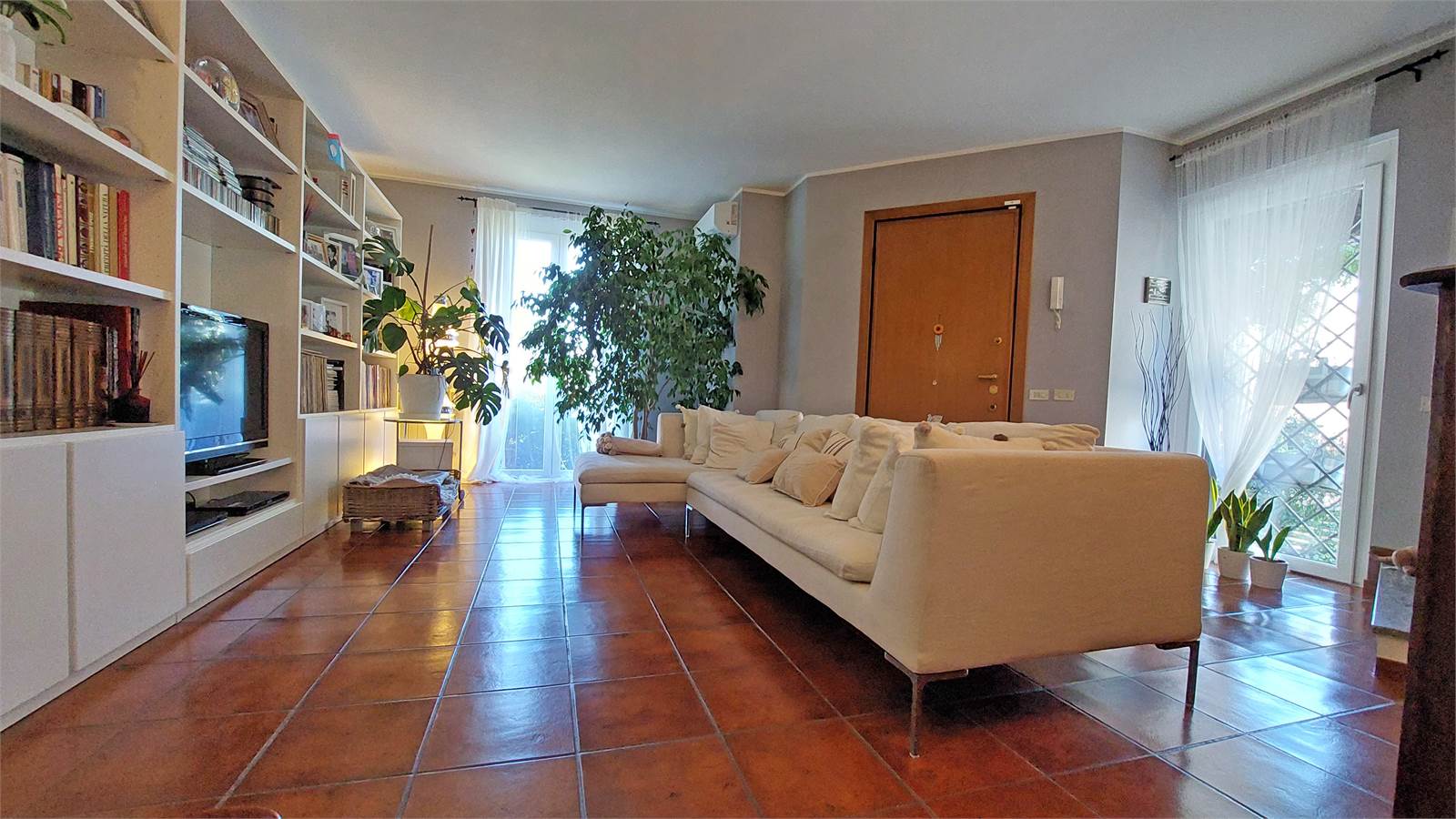 Le finiture interne risultano calde e curate, con pavimentazione in cotto nella zona giorno e parquet nella zona notte, oltre a sanitari recentemente rinnovati. La tripla esposizione est – nord – ovest assicura una buona distribuzione della luce naturale durante l’arco della giornata.