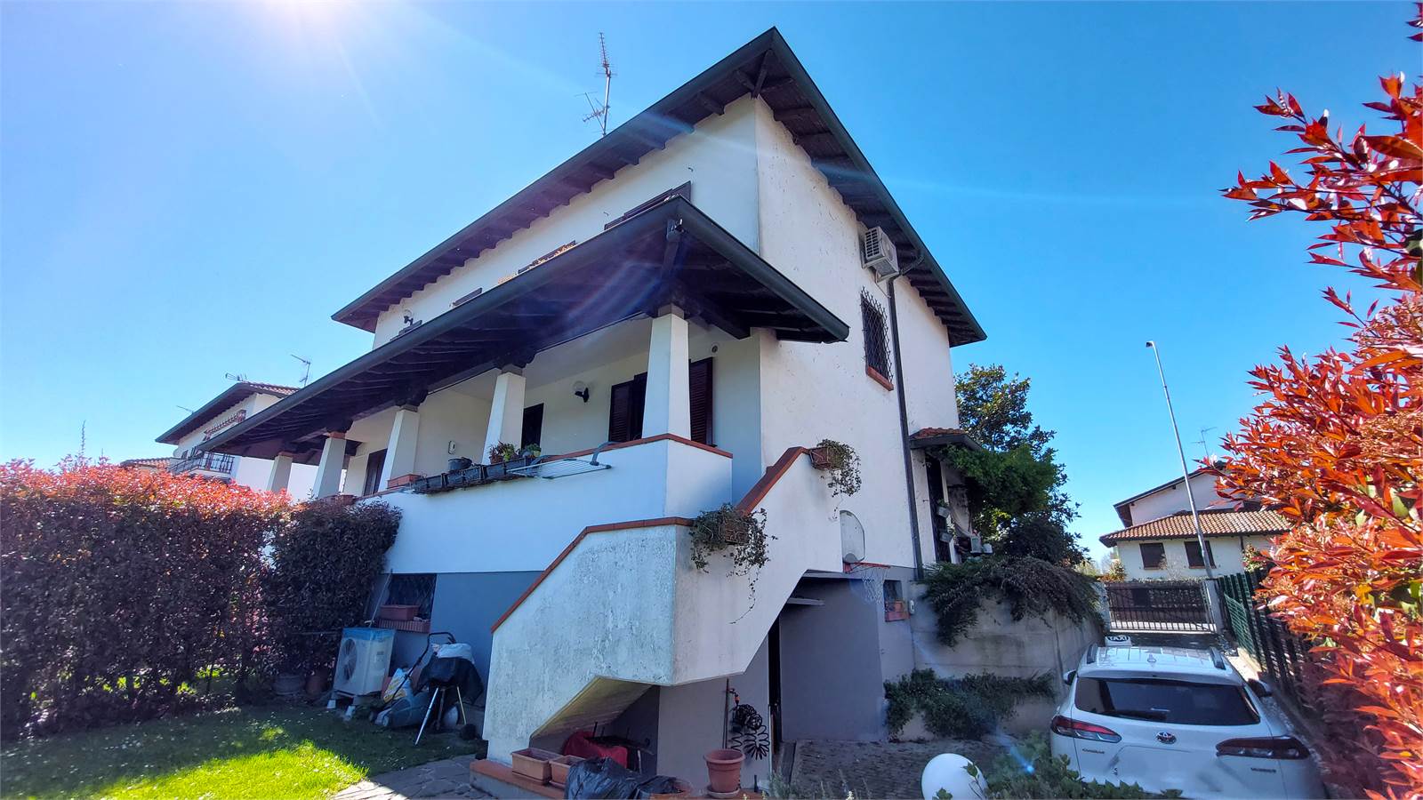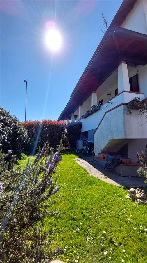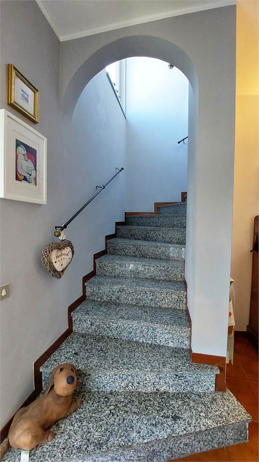 La villa, accogliente e ben curata, si sviluppa su una superficie complessiva di circa 165 mq distribuiti su più livelli. Al piano rialzato si apre una piacevole zona giorno composta da un soggiorno accogliente e ben proporzionato e da una cucina abitabile con terrazzino coperto e collegamento al giardino tramite pochi gradini, oltre a un pratico servizio. Il piano primo, collegato da comoda scala interna, ospita la zona notte con tre camere da letto, due balconi e un secondo bagno completo sia di doccia che di vasca, soluzione ideale per le esigenze della famiglia.