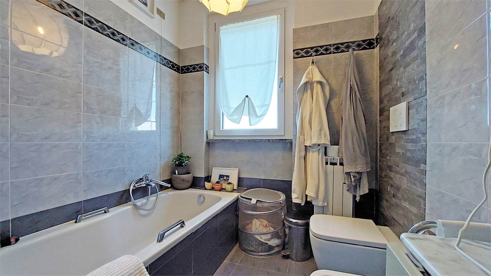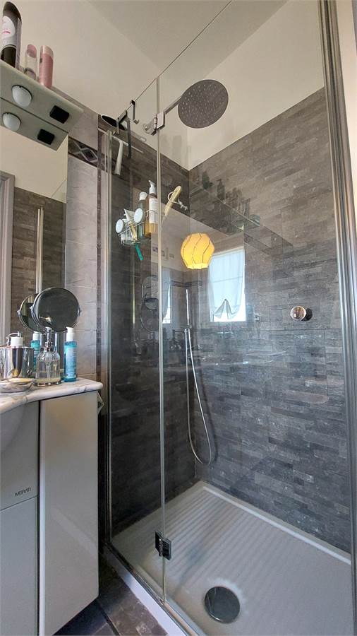Particolare attenzione è stata riservata all’efficienza energetica e al contenimento dei consumi: l’immobile è dotato di impianto fotovoltaico da 6 kW con sistema di accumulo, serramenti di nuova generazione con doppi vetri ad alte prestazioni isolanti e caldaia ibrida. A ciò si aggiungono aria condizionata con pompa di calore (due split), antifurto, zanzariere e un’inferriata presente nel bagno al piano seminterrato, elementi che contribuiscono a garantire comfort e sicurezza.