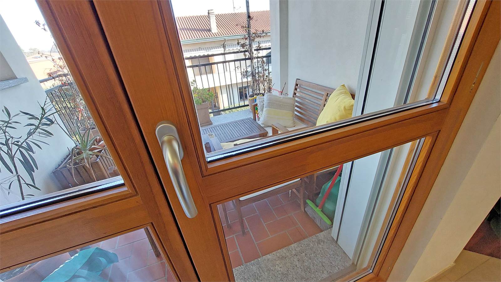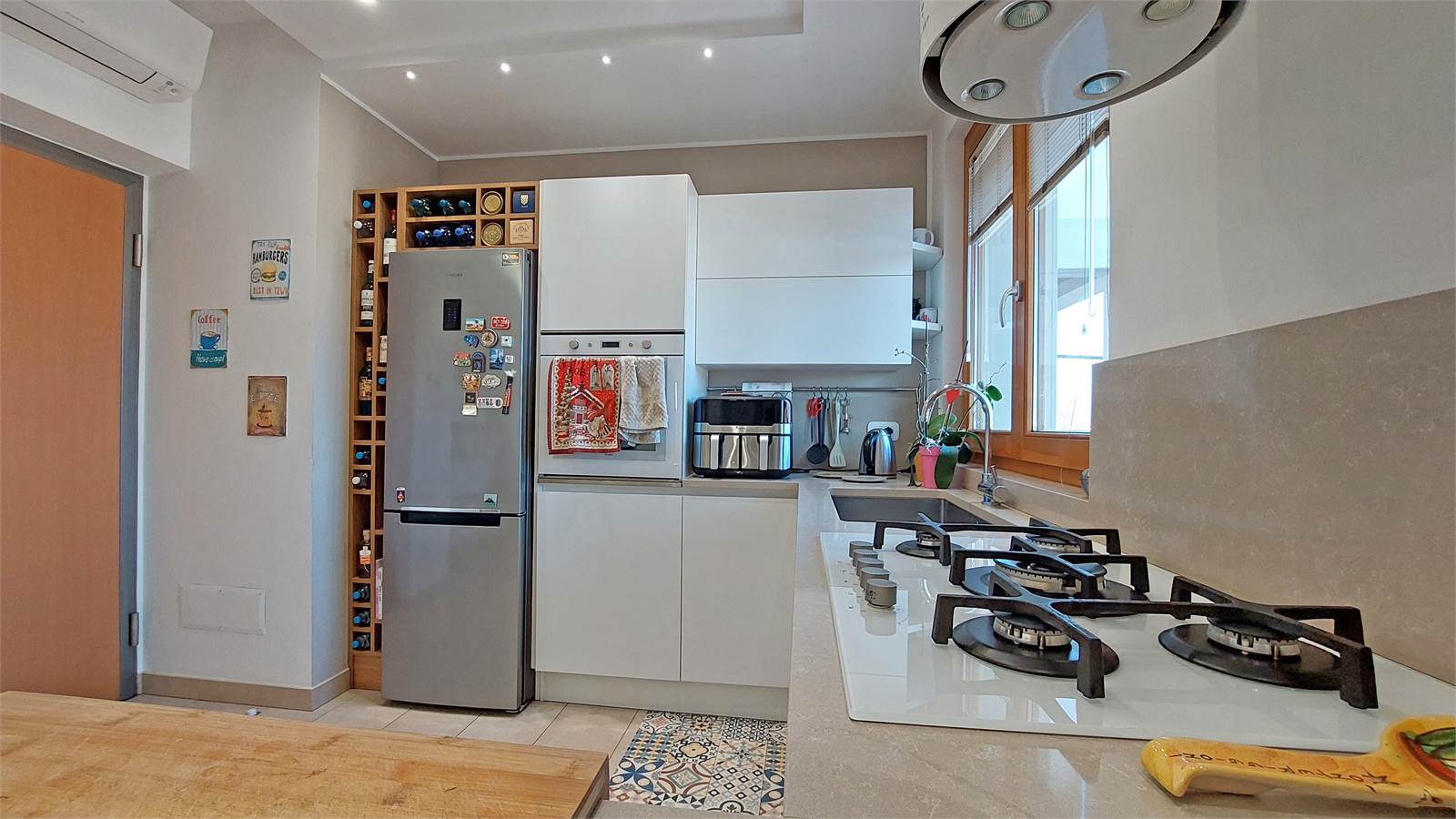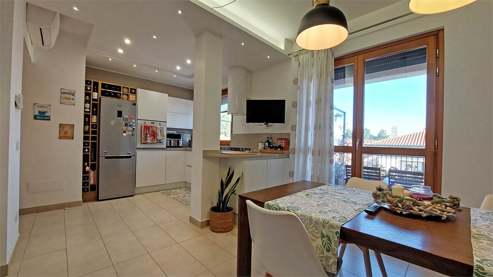porta blindata, serramenti di ultima generazione con taglio termico, tapparelle elettriche, zanzariere, impianto di antifurto perimetrale e volumetrico, climatizzazione Daikin con quattro split e abbassamenti in cartongesso con faretti e illuminazione a LED.