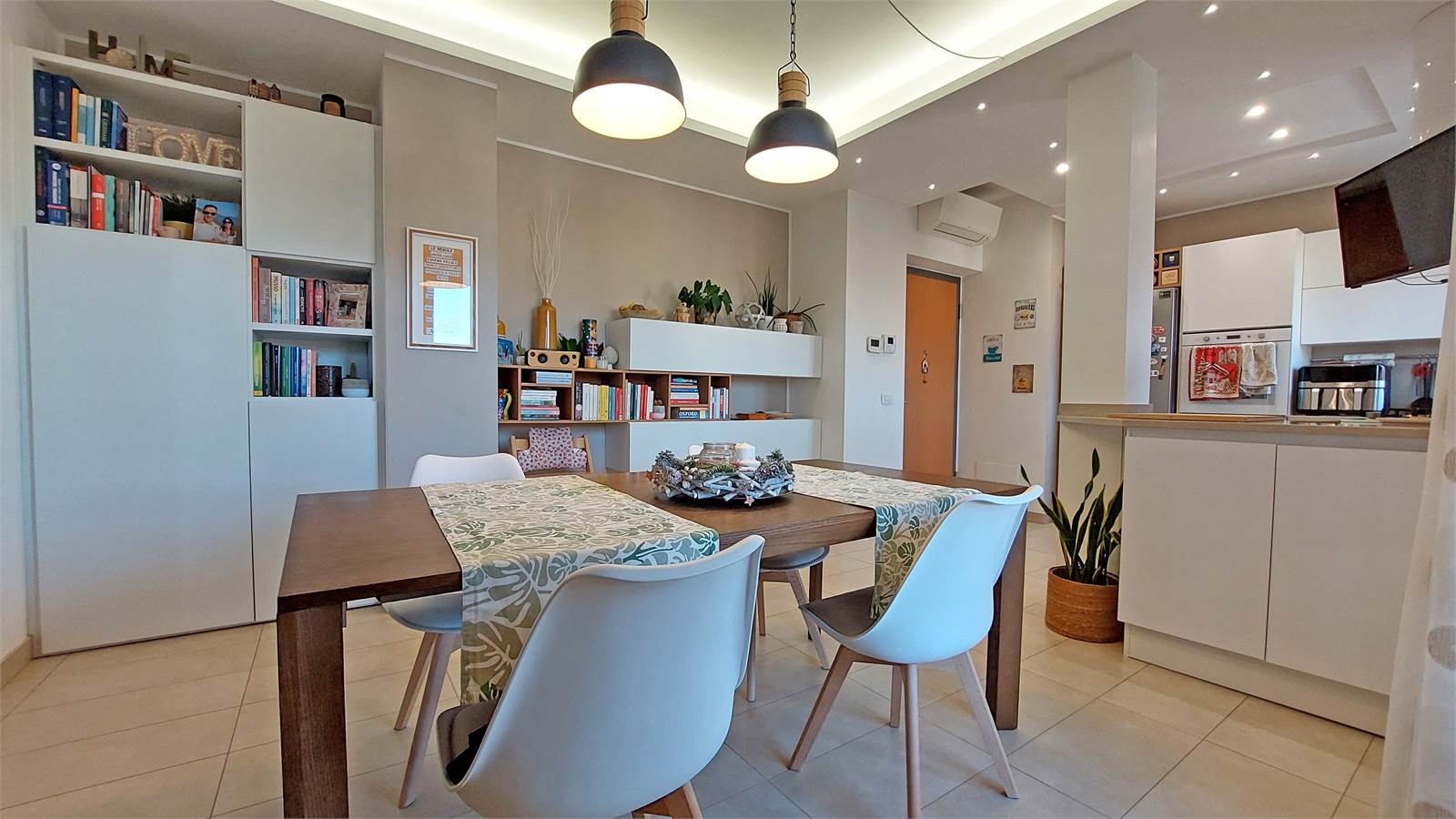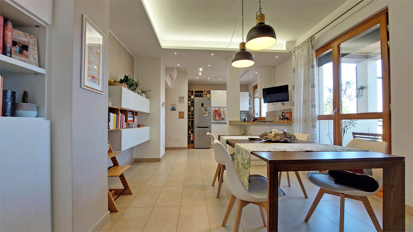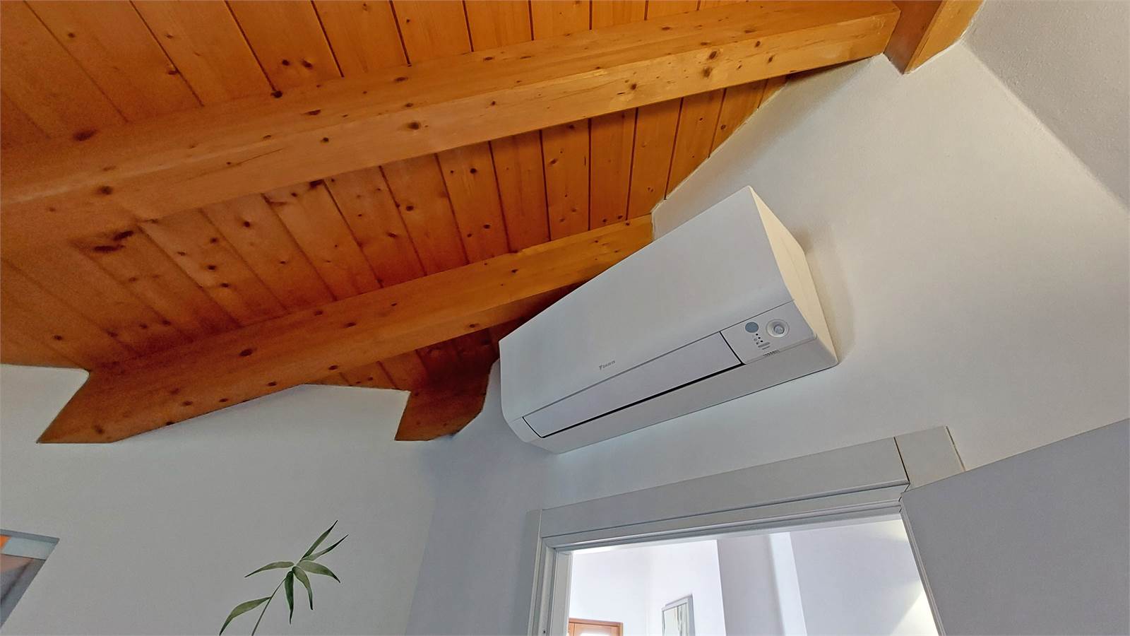 porta blindata, serramenti di ultima generazione con taglio termico, tapparelle elettriche, zanzariere, impianto di antifurto perimetrale e volumetrico, climatizzazione Daikin con quattro split e abbassamenti in cartongesso con faretti e illuminazione a LED.