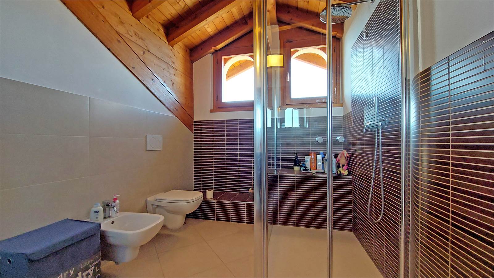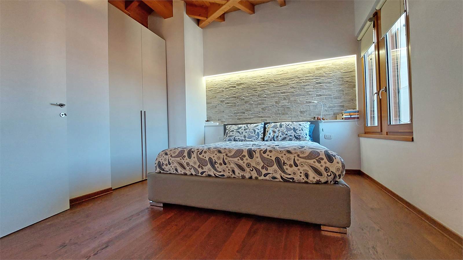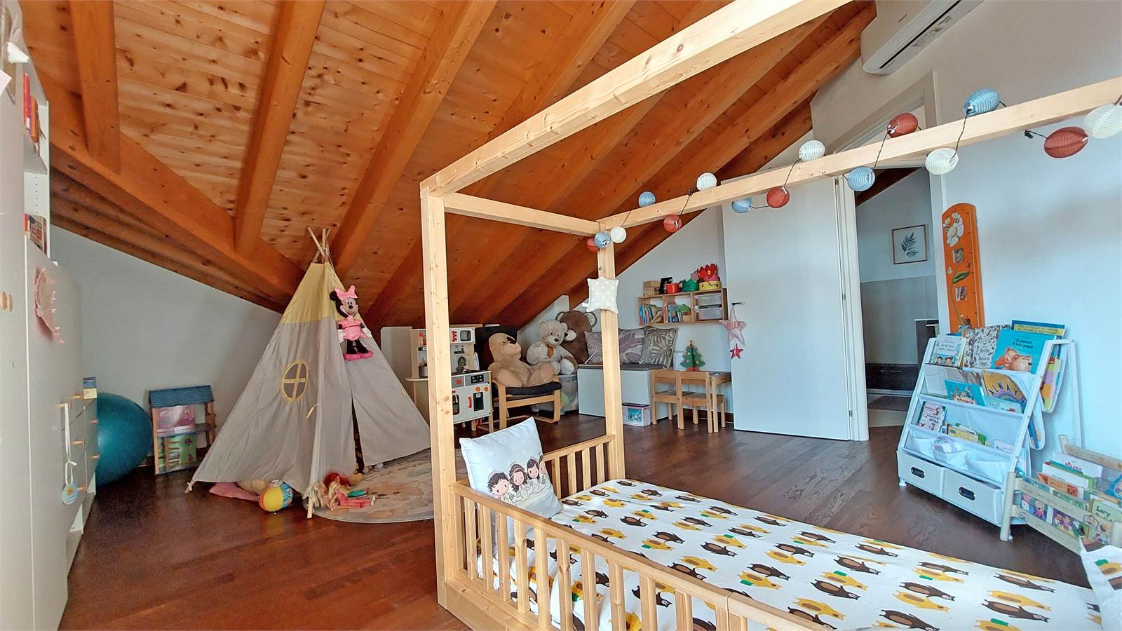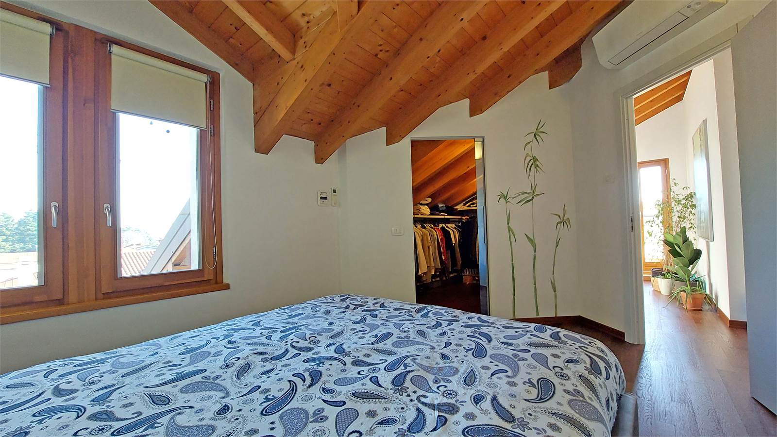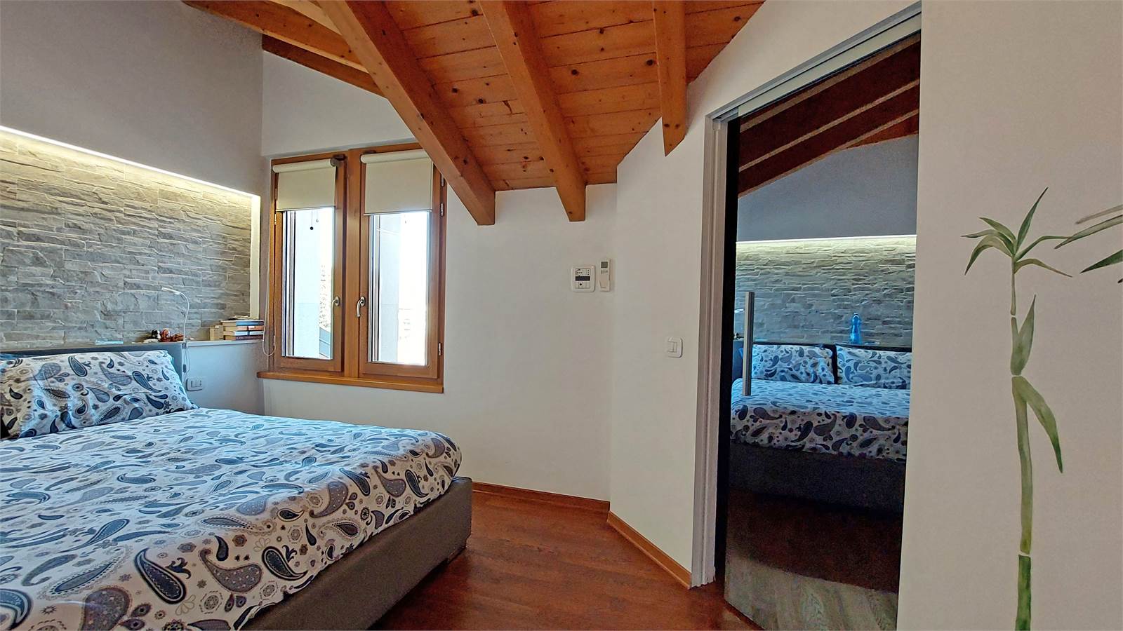 Il piano mansardato ospita un disimpegno, due camere da letto, di cui la matrimoniale impreziosita da una cabina armadio, un terrazzo sul tetto, servizio e un ulteriore ripostiglio, offrendo spazi ben distribuiti e funzionali.