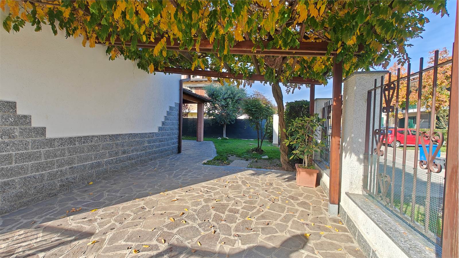 Si presenta l'opportunità di acquisire una porzione di villa bifamiliare, ubicata nel contesto storico-paesaggistico di Morimondo, in posizione centrale e nelle immediate adiacenze della storica Abbazia Cistercense. La residenza, di quattro locali, si sviluppa su due livelli fuori terra oltre il piano seminterrato, garantendo un'elevata qualità abitativa e riservatezza. L'accesso avviene tramite il giardino privato di pertinenza, che conduce alla zona giorno del piano terreno, composta da un soggiorno con camino, una cucina abitabile e un bagno. La proprietà è arricchita da due ampi portici coperti, uno dei quali specificamente attrezzato con angolo barbecue, ottimizzando lo spazio esterno. Il piano superiore ospita la zona notte, con tre camere da letto e il bagno padronale. Il piano seminterrato è destinato a un ampio locale cantina, attualmente adibito a tavernetta. Completa la proprietà il box auto singolo collocato al piano terreno.