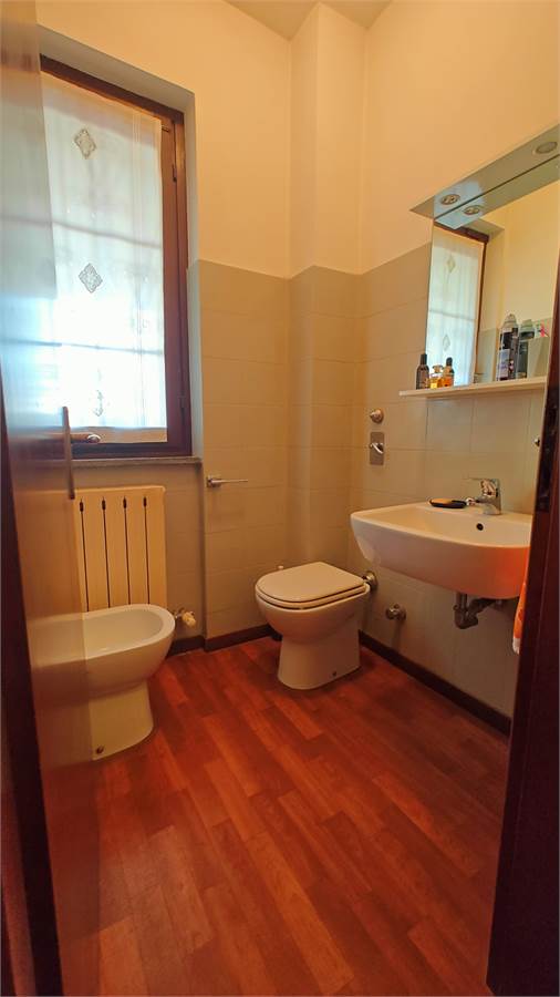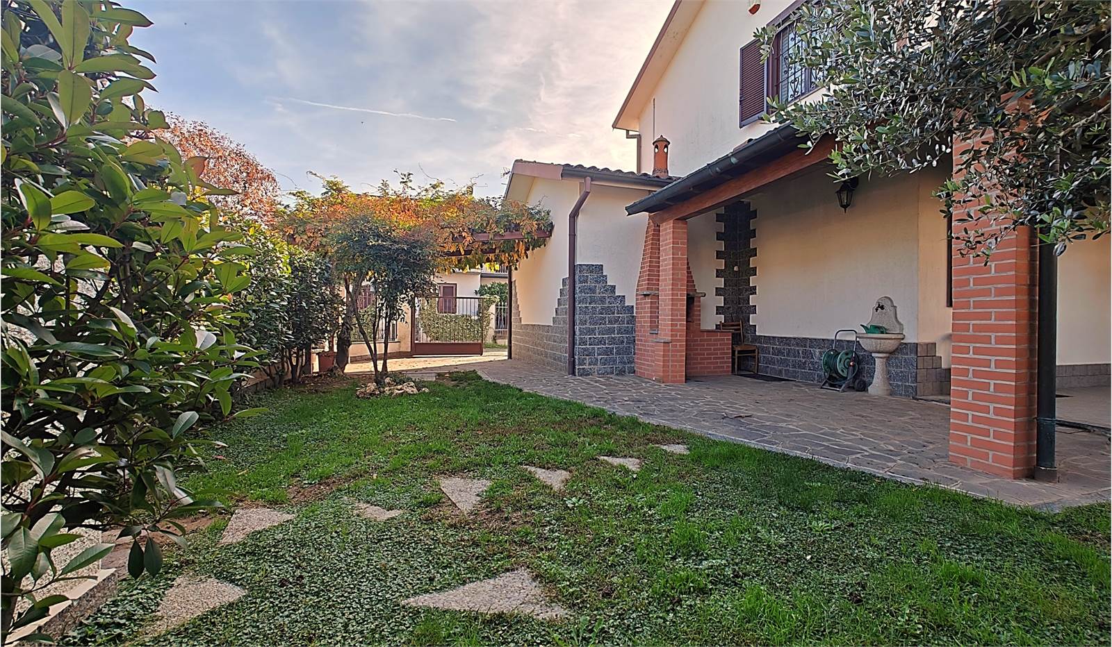Sotto il profilo delle dotazioni e della sostenibilità, l'immobile si distingue per i recenti interventi di riqualificazione energetica: è stato installato un impianto fotovoltaico completo di accumulatore/batteria, assicurando un notevole efficientamento energetico e una significativa riduzione dei costi di gestione. Il sistema di riscaldamento è stato totalmente aggiornato mediante la sostituzione della caldaia a condensazione, e il sistema è regolato da valvole termostatiche installate su tutti i caloriferi in ghisa. La sicurezza è garantita da un impianto d'allarme volumetrico e perimetrale, e il comfort climatico è assicurato dalla presenza di due split per la climatizzazione. Le finiture interne, inclusi pavimenti e rivestimenti, sono dell'epoca di costruzione dell'immobile, lasciando spazio alla personalizzazione degli ambienti interni. Gli infissi sono in legno con doppio vetro e recentemente sono state sostituzione le persiane esterne con elementi in alluminio.